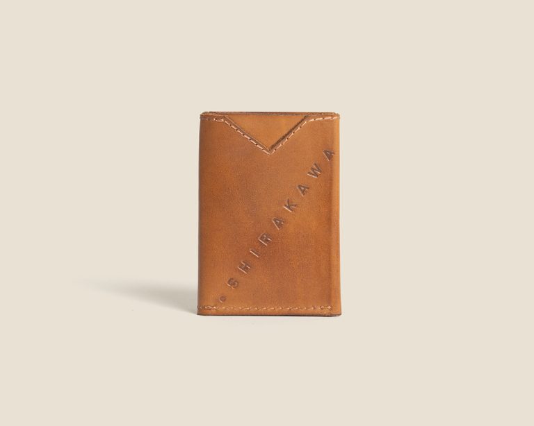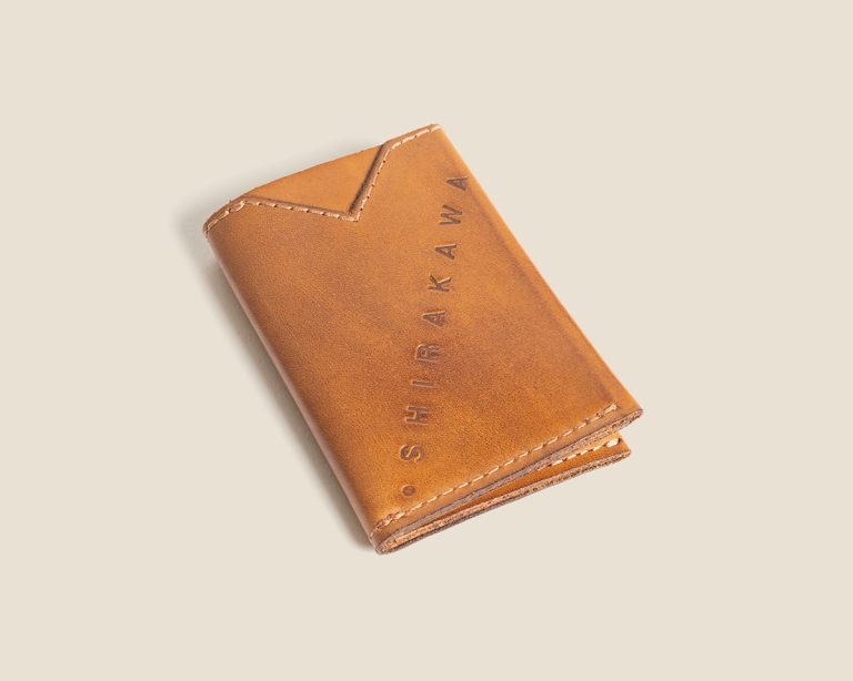 A compact leather wallet designed to hold your paper notes securely. Its compact form ensures practicality without sacrificing style, while subtle Shirakawa detailing adds an understated touch of sophistication for everyday use.