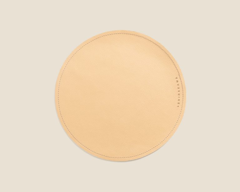 This round leather placemat adds elegance to any dining setting. Functional yet refined, it protects your table while the exclusive Shirakawa icon provides a subtle, sophisticated detail. Available in soft neutral shades, it complements every table arrangement with understated style.